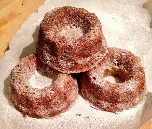 I have some mini-bundt tins that I’ve never had the opportunity to use, so we were alright there. After a quick raid of the spice rack, I changed my mind from nutmeg to cardamom and presto. Cake time.